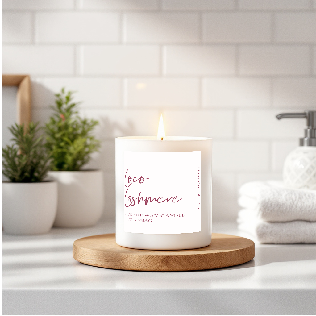 Cozy up with the indulgent softness of our Coco Cashmere Candle, hand-poured in a generous 10 oz matte white glass jar for extended burn time and room-filling throw. This creamy, comforting scent blends coconut milk, jasmine, and cocoa butter over a warm base of cashmere musk and cedarwood.