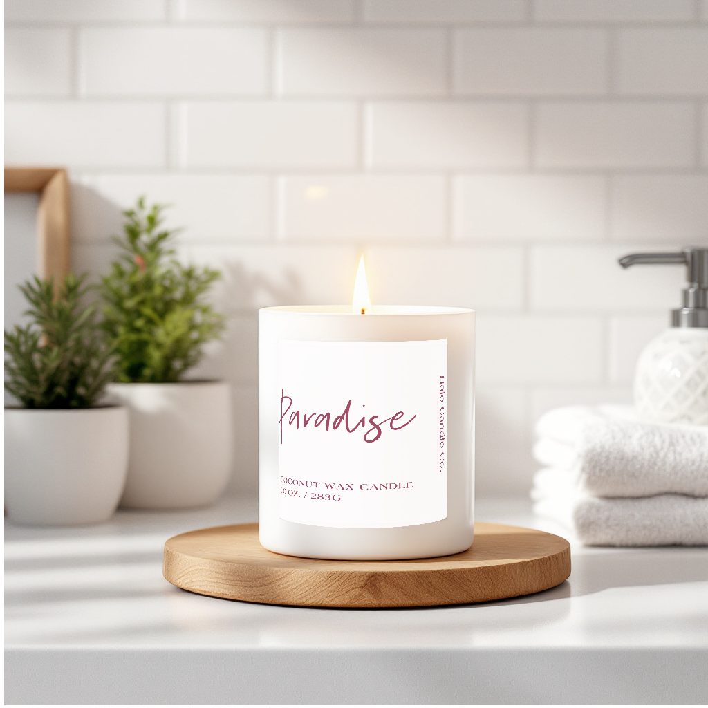 Transport your senses with our Paradise Candle, a vibrant, tropical blend inspired by the iconic Volcano fragrance. Hand-poured in a 10 oz matte white glass jar using a premium coconut wax blend and cotton wick, this candle offers long-lasting burn and bold fragrance throw.